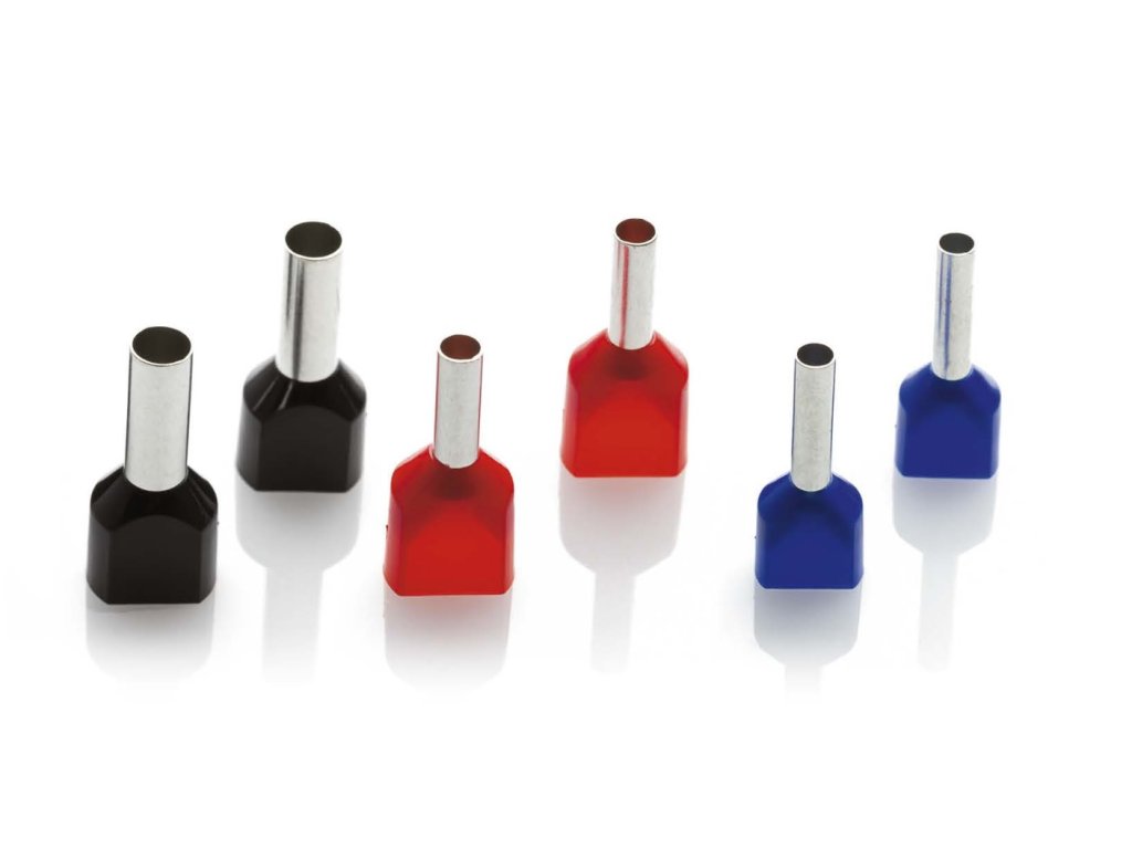 Dvojité lisovací dutinky s izolací - TCEF2510F (Průřez: 2,5 mm², Barva: modrá, Délka kolíku: 10 mm, Balení: 100 ks)